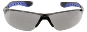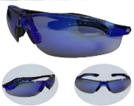 Óculos de segurança com lente espelhada azul, oferecendo proteção e conforto visual, reduzindo o reflexo do sol.